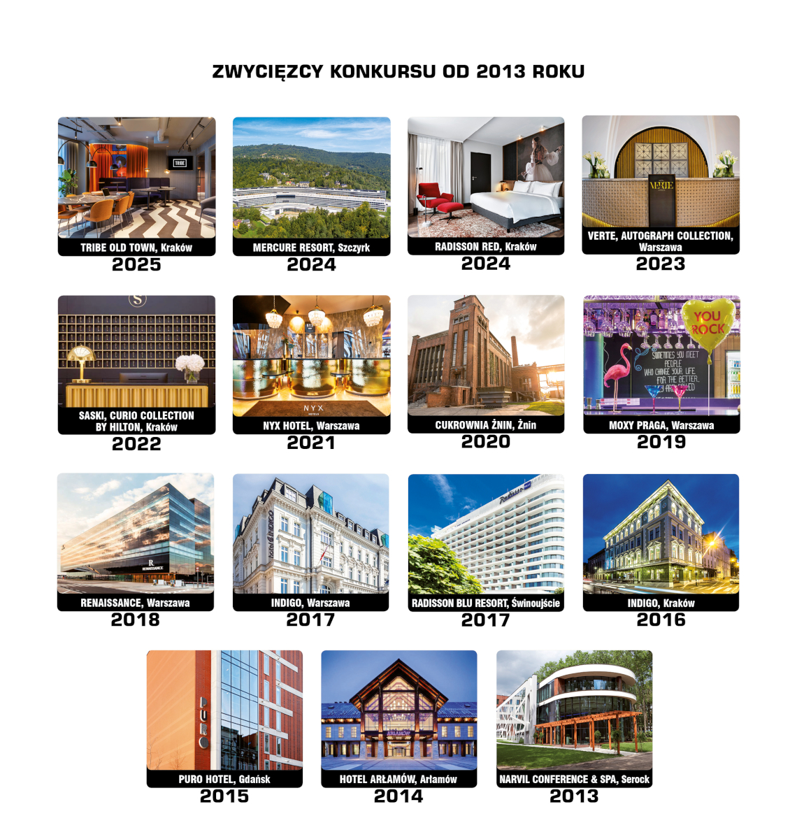 Nasza inicjatywa opiera się na niezmiennym założeniu. Wyróżniamy te obiekty, w których ciekawa architektura, design oraz rozwiązania funkcjonalne tworzą spójną i logiczną odpowiedź na specyfikę polskiego rynku hotelarskiego. Zeszłoroczny triumfator, krakowski TRIBE Old Town, udowodnił, że odważna interpretacja i uniknięcie powielania utartych, hotelowych schematów potrafią skuteczniezbudować tożsamość miejsca. Teraz chcemy poznać kolejne inwestycje, które redefiniują podejście do gościnności. Szukamy projektów dojrzałych, w których estetyka nie stanowi jedynie sztucznej oprawy, ale realnie wspiera inteligentną koncepcję biznesową.