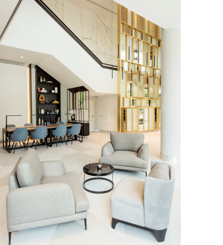 Odnowienie wnętrz hotelu tak, aby móc „up-gradować” Radisson Blu na Grzybowskiej pod markę Radisson Collection – portfolia najlepszych hoteli sieci Radisson. W rozległym lobby dominują jasne kolory posadzek i ścian, przełamane czernią stali, ciepłem drewna oraz niebieską tapicerką poszczególnych mebli. Ważną rolę w wystroju odgrywają szlachetne materiały – wzory naturalnego kamienia na ścianach i blatach, eleganckie mosiężne detale, czy dekoracyjne tafle szkieł i barwionych luster. W pokojach i łazienkach dominuje połączenie czerni i bieli, jasne marmury z delikatnym wzorem, struktury drewna i odcienie szarości.